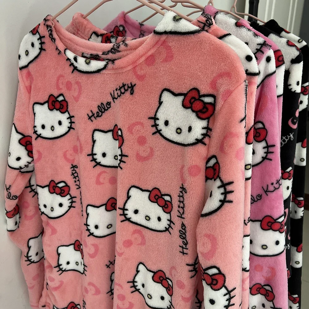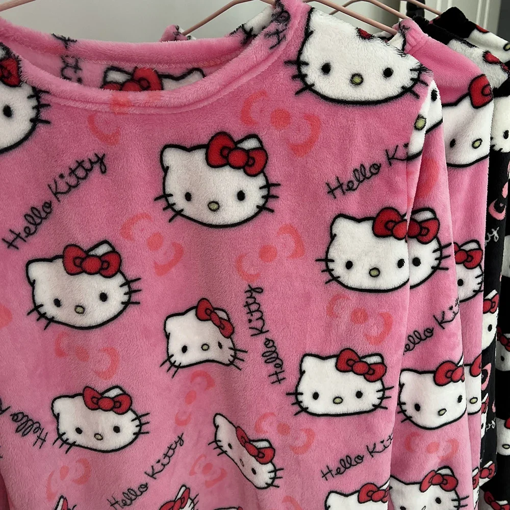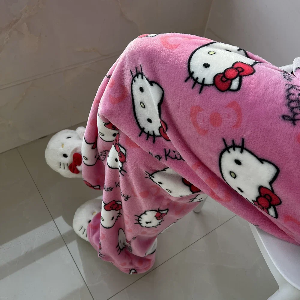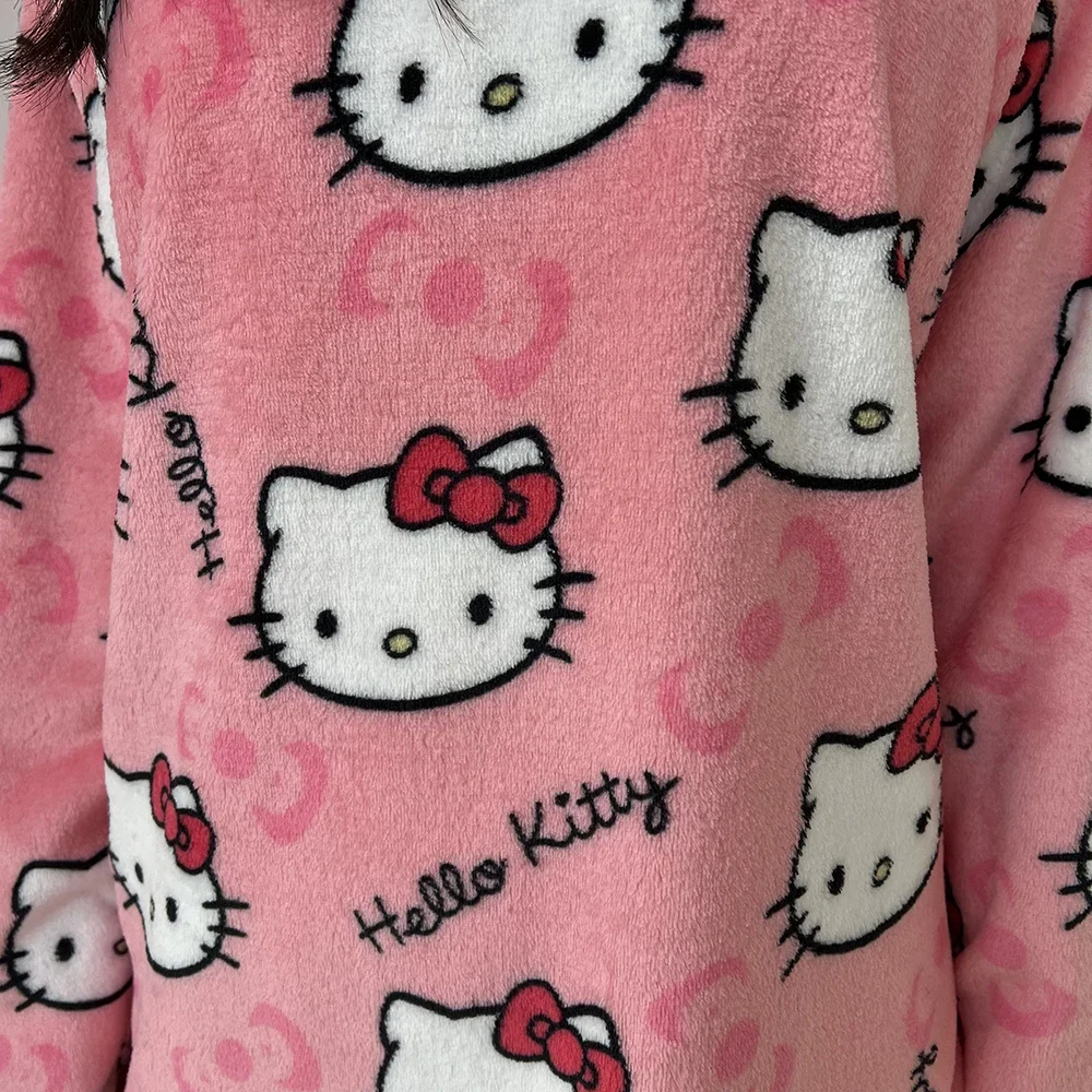 2Pcs/Set Hello Kitty Pajamas Pants Anime Sanrio Sleepcoat Cartoon Cute Home Wear Couple Loungewear Warm Pajama Set Girl’s Gift