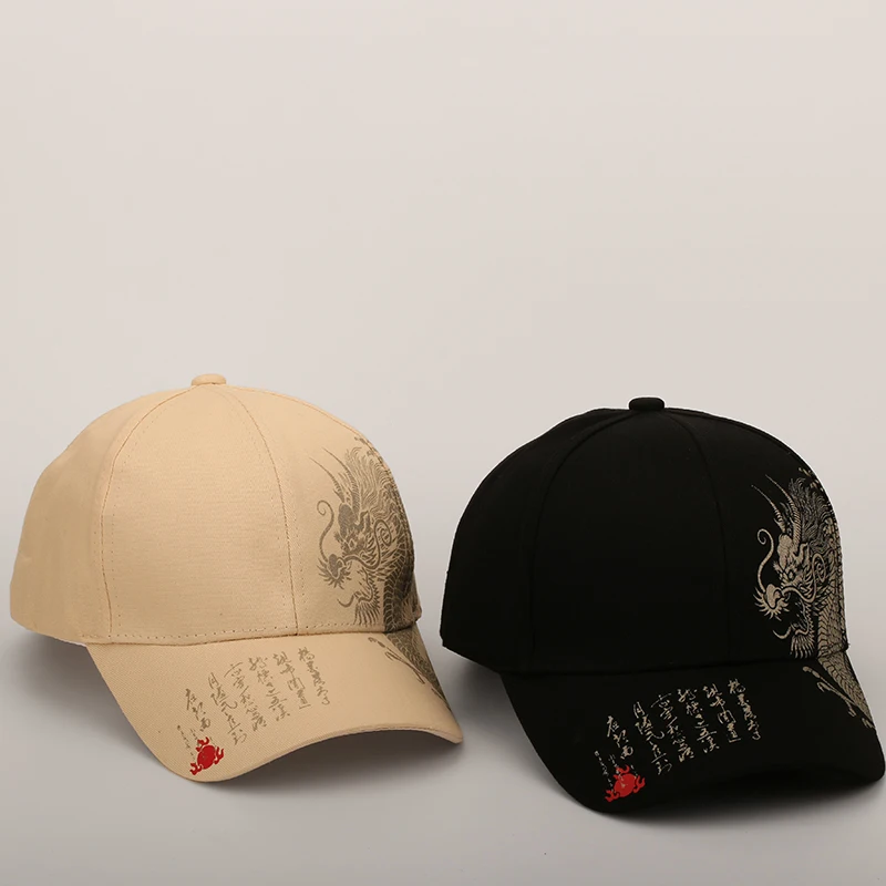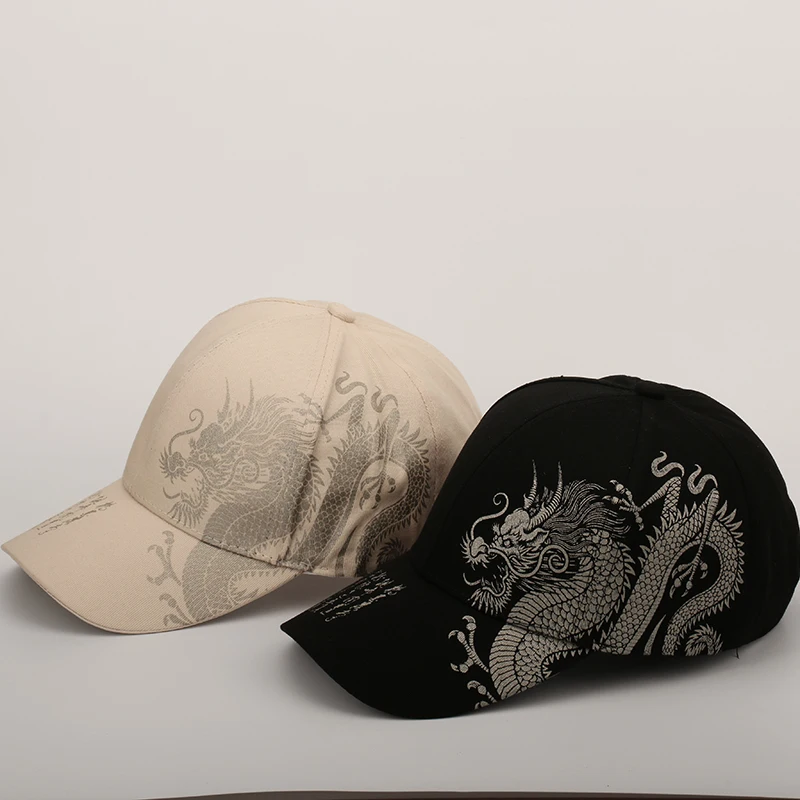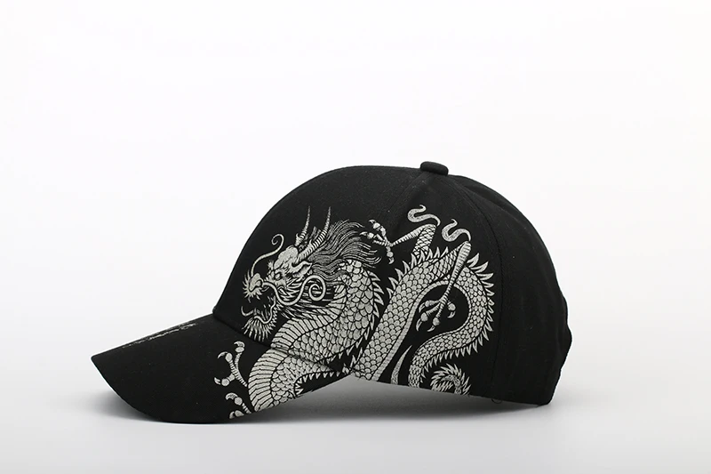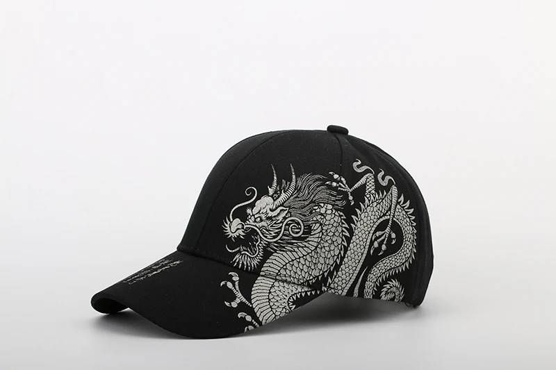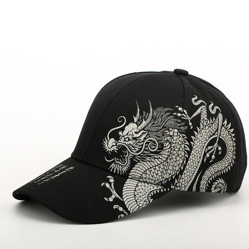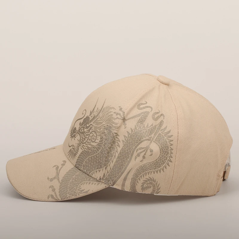 This baseball hat features a unique Chinese style dragon pattern, adding an exotic touch to your outfit. Perfect for those who appreciate international culture and design.
