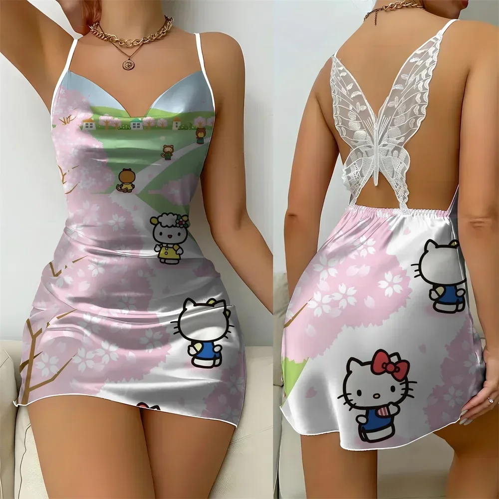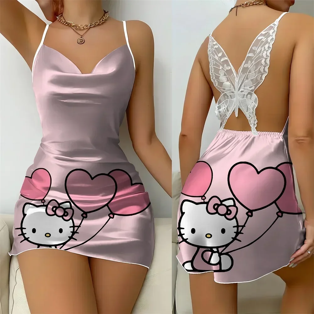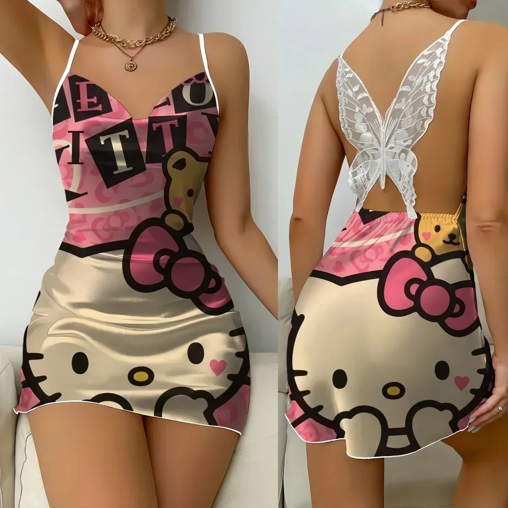 Hello Kitty ladies Casual butterfly dress summer pajamas women’s fashion Comfortable butterfly dress family wear sexy pajamas