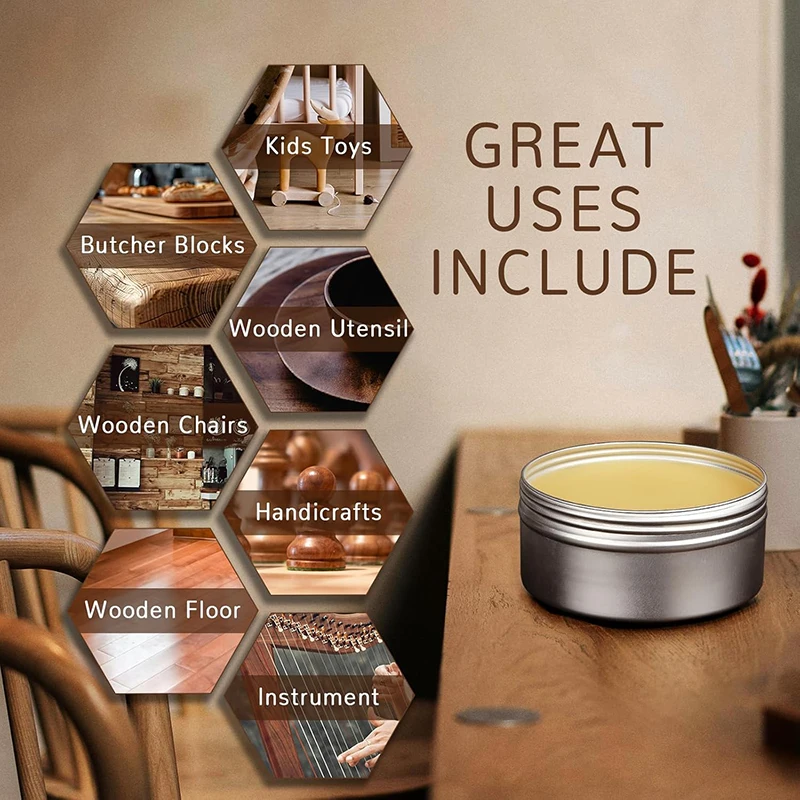 SUITABLE FOR: Our wood beeswax can be used on both finished and unfinished wood surfaces, Such as Wooden floor, Bamboo floor, Mahogany furniture, Wooden furniture, Wooden ornaments.