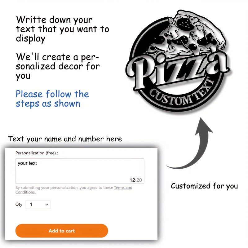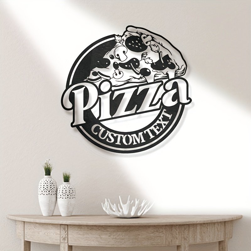 Customizable Pizza Metal Wall Art Sign – Personalized Italian Restaurant & Pizzeria Decoration, Black & White Pepperoni Design, Durable Metal Material, Indoor/Outdoor Use, High-Quality & Weather-Resistant, Restaurant Wall Decor|Art Deco Style|Weatherresistant Sign, Pizza Decor