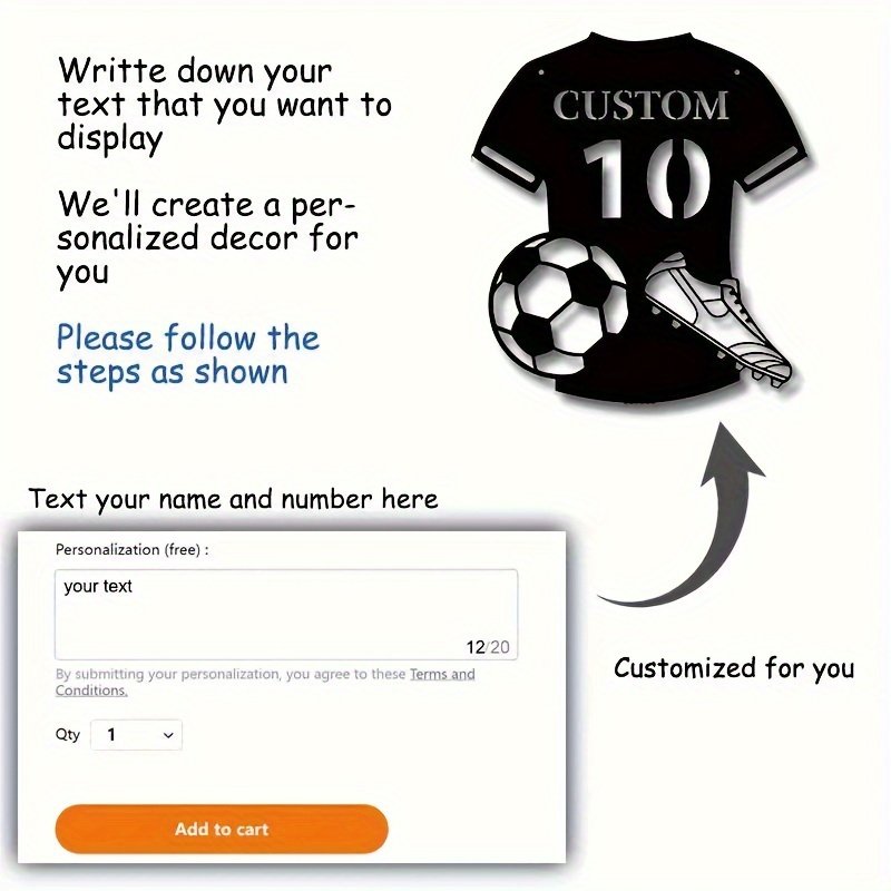 Personalized Soccer Sign Metal Wall Art Deco – Custom Name & Number Football Jersey Wall Decor, Reusable Pre-pasted Matte Metal Mural for Home Decor, Detachable Artistic Sports-Themed Gift